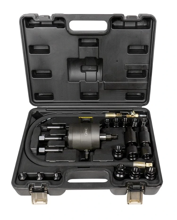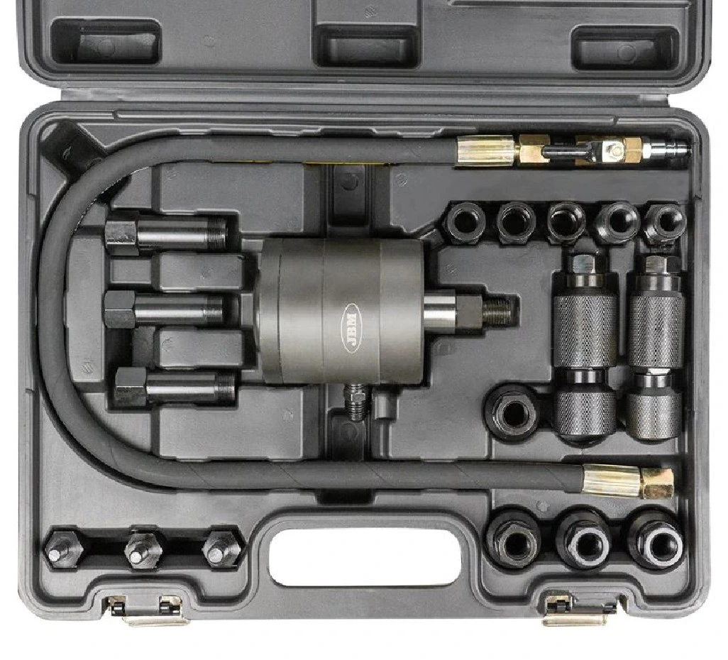 Rinkinys susideda iš pneumatinio ištraukiklio ir kelių adapterių, kurie yra tinkami įvariems purkštukams rinkoje: Bosch, Delphi, Denso, Siemens